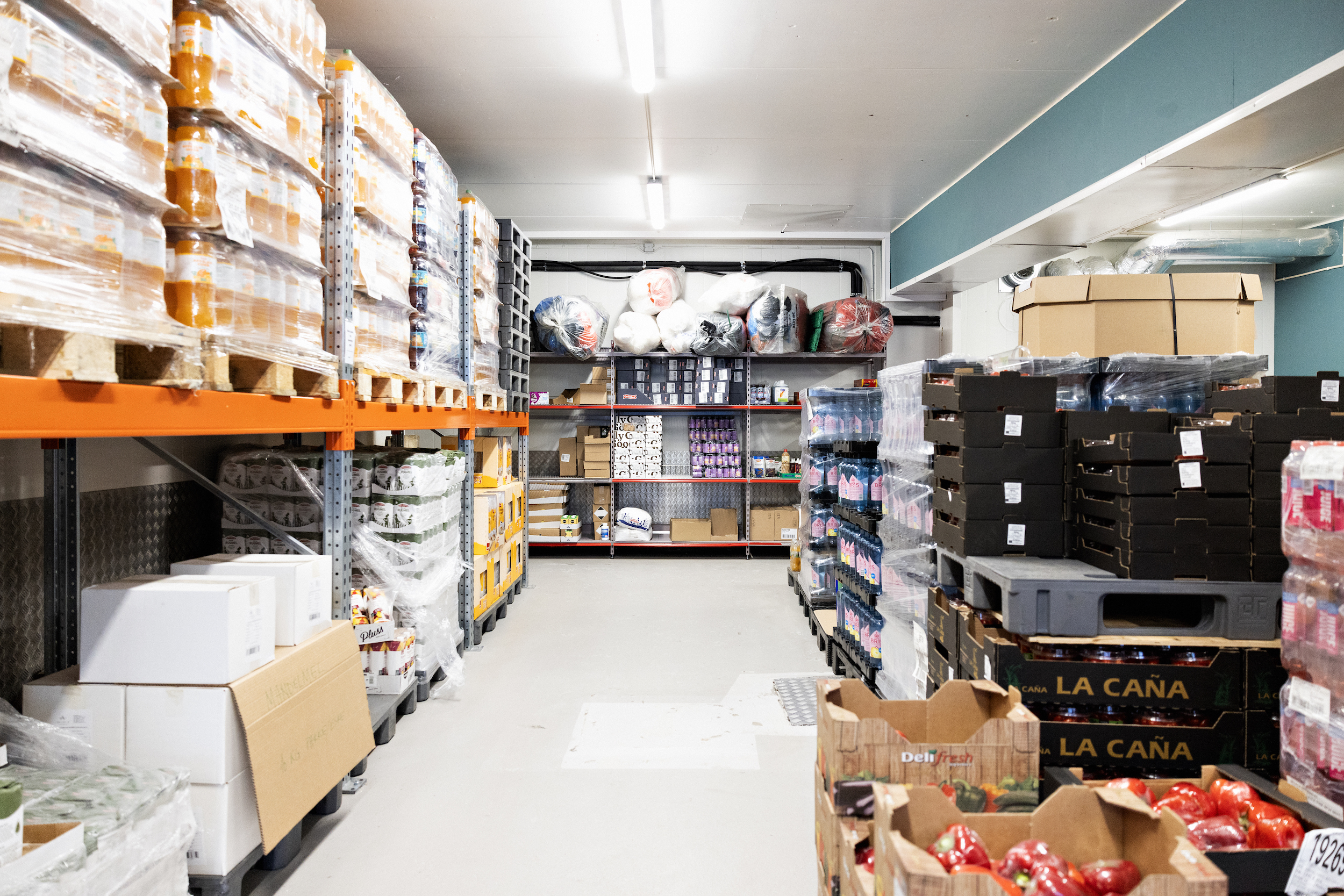 På fryselageret står paller med risgrøt og pepperkakedeig som Matsentralen fikk donert etter jul i fjor. Så og si all maten de får, er såkalt overskuddsmat. Det kan være alt fra mat som skal ut av sortimentet til produsenten, mat med kort holdbarhetsdato eller mat som er feilmerket eller skal få ny pakning. Gjennom arbeidet Matsentralen gjør, hjelper de matbransjen med å redusere matsvinn samtidig som de bistår ideelle organisasjoner med å redusere fattigdom.