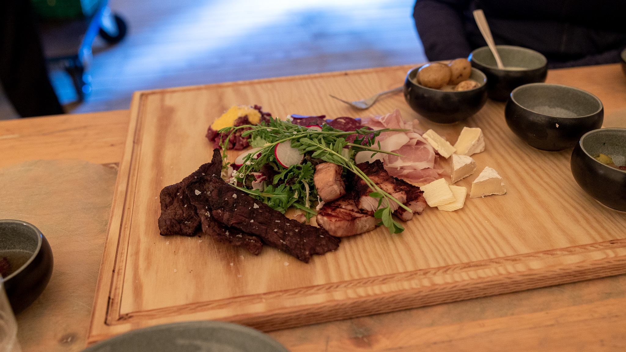 Det å sitte ved et langbord i Norges største lavvo og spise mat fra en meny med lokale smaker er definitivt en opplevelse for livet. Buljong av rein med røkt reinshjerte, tartar av rein, potetbrød med ramsløkaioli og nydelig grillet kjøtt; alt toppet med lokaldyrkede urter - kan du ønske deg mer?