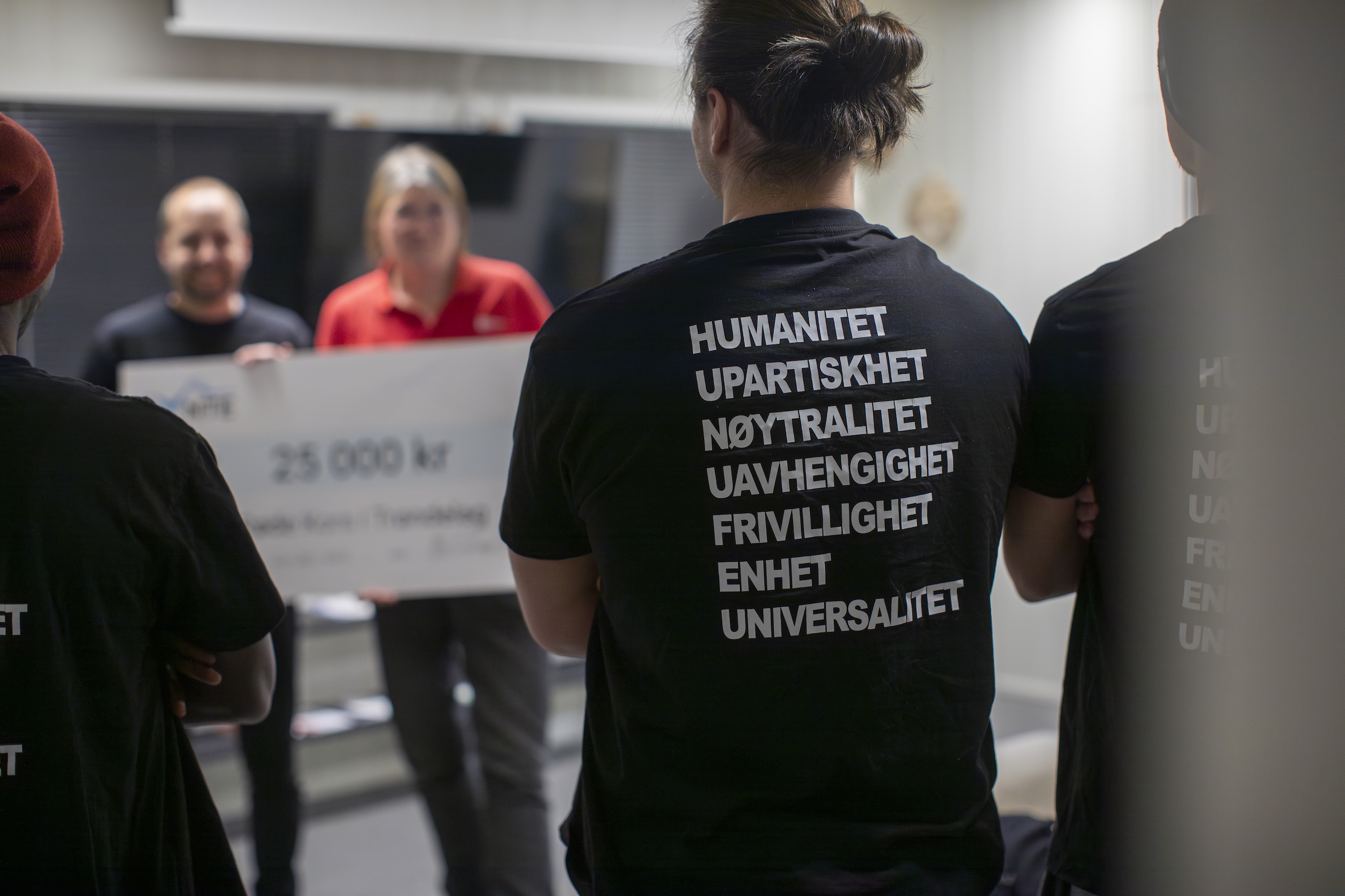 I år ble det bestemt at de 100 000 kronene de ansatte har til disposisjon, skal deles og gis bort til fire formål. Røde Kors i Trøndelag er første mottaker av 25 000 kroner, og de har valgt å bruke pengene på “Fellesskap og førstehjelp”, som er tiltak for de innsatte i fengselet i Verdal.