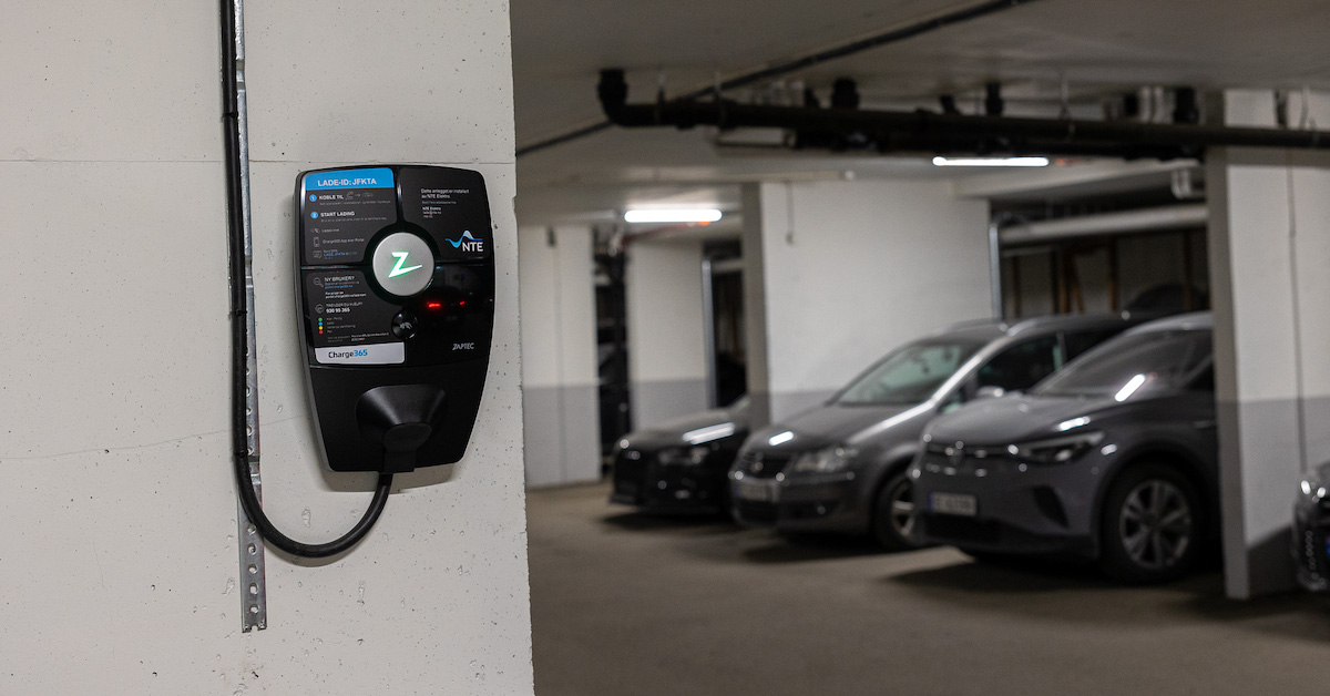 Rune er en av de mange i Risvollan borettslag som har valgt å kjøpe sin egen elbil-lader inne i fellesgarasjen.