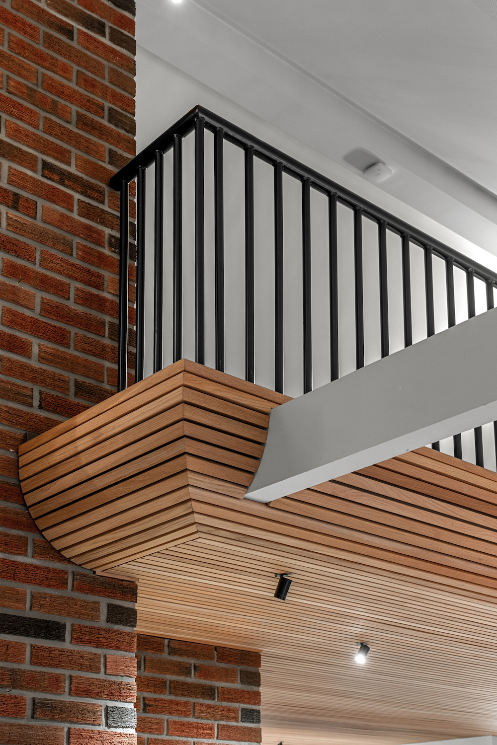 Et annet slående trekk ved huset, er todelingen de har skapt ved hjelp av lys- og fargevalg. Det svarte kjøkkenet med eiketak har fått selskap av svarte spotlights som får frem fargespillet i treet. I den hvite stua med hvitt tak, er også spottene hvite og nærmest usynlige - helt til tussmørket faller på. Da vasker spottene veggene i et behagelig lys og forsterker følelsen av at du sitter i et hus hvor ingenting er overlatt til tilfeldighetene.