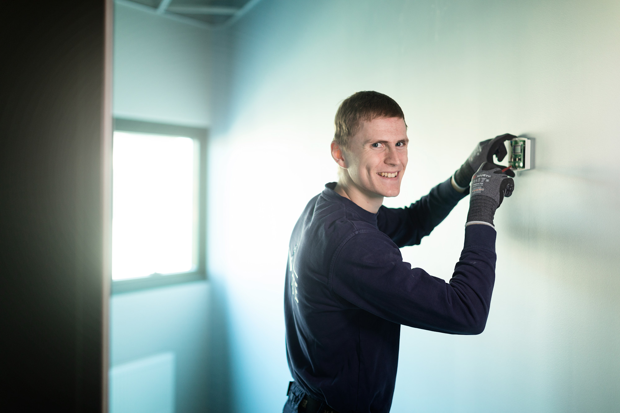 Som lærling var Fredrik med kollegaene ut på oppdrag, både hos bedrifter og privatpersoner. Nå som han har fagbrev, jobber han mer selvstendig. For øyeblikket jobber han på prosjekt; både sammen med andre elektrikere, men også sammen med andre fagfolk som rørleggere og ventilasjonsteknikere.